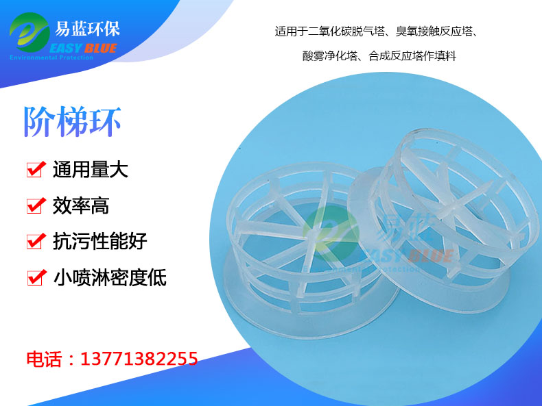 二氧化碳脫氣塔、臭氧接觸反應塔、酸霧凈化塔、合成反應塔作填料,同時階梯環填料廣泛應用于氣浮噴淋式壓力溶氣罐。