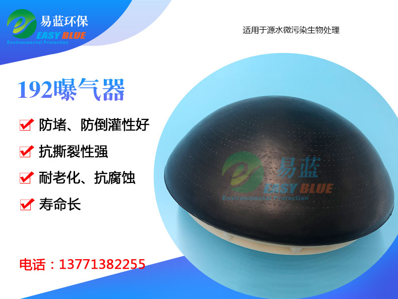 3、耐老化、抗腐蝕。球冠形曝氣膜片選用優質橡膠制成,支承托盤及楔形插均勻為工程塑料。這些材質具有優異的物理和機械性能。耐老化能優良,并耐酸、堿和抗藥劑等化學腐蝕。