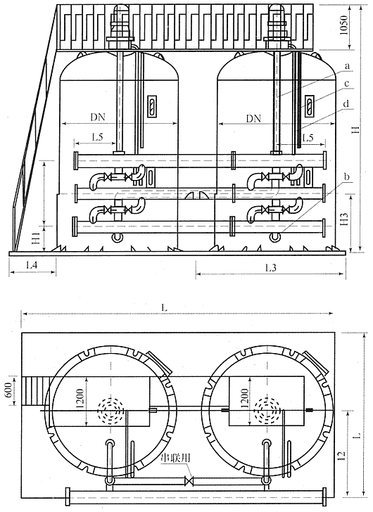 為充分發揮束裝纖維濾料的特長,在過濾器的濾層內設有加壓室,通過加壓室對纖維的擠壓,使濾層沿水流動的方向的截面逐漸縮小,密度逐漸加大,相應濾層空隙直徑和空隙逐漸減小,實現了理想的深層過濾。當濾層被污染需要清洗再生時,可將加壓室的水排出,處于放松狀態,即可用水方便地進行清洗。高效纖維束過濾器結構見附圖。