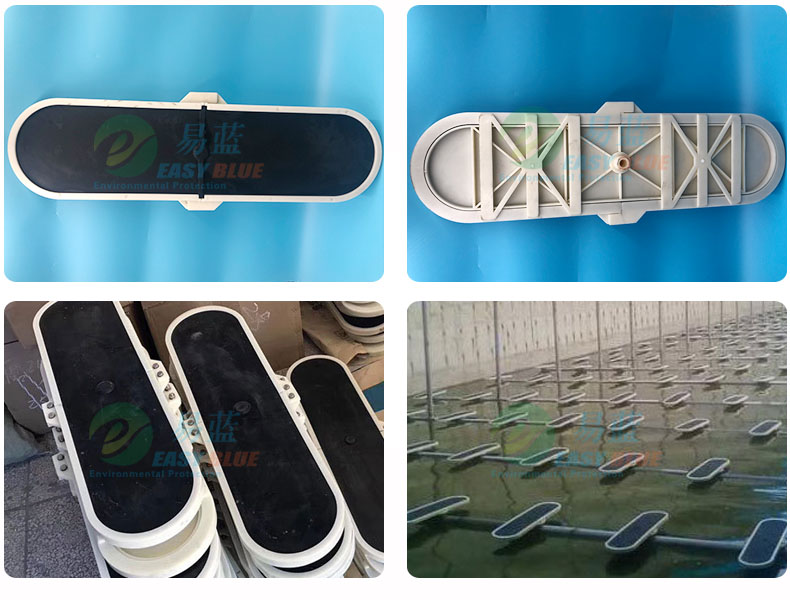 板式微孔曝氣器結構形式,優點是能使曝氣系統在較寬的工作氣量范圍內能保持恒定的氧轉移率。膜片板式微孔曝氣器的支撐板由pp+玻纖材料或不銹鋼制成,膜片平鋪其上。并且一次壓膜成型,不會出現二次粘貼導致脫膠問題。板式微孔曝氣器可用于間歇運行系統,又可用于連續運行系統,采用電腦數控開孔技術使曝氣器在停止運行時能自動關閉微孔,有效阻止了泥水的倒灌。從上面各項看出U&D系列膜片板式曝氣器具有超出一般微孔曝